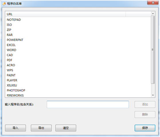 “文件白名单”,这是通过添加文件后缀名的方式使得一些文件将不再受本系统的拦截和控制;